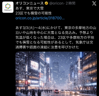 雪らしい。えっ。。。